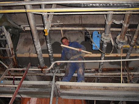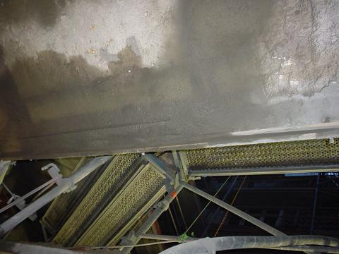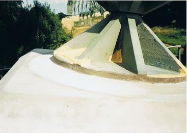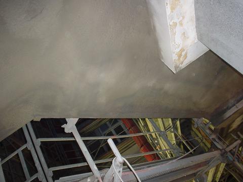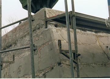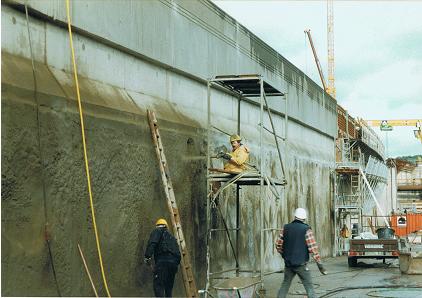 Auf diesen Unterzügen lasten die Walzen der Papiermaschinen . Diese Instandsetzung musste wärend eines Betriebsstopps durchgeführt werden , da der Spritzbeton nur auf vibrationsfreien Untergrund aufgebracht werden kann .