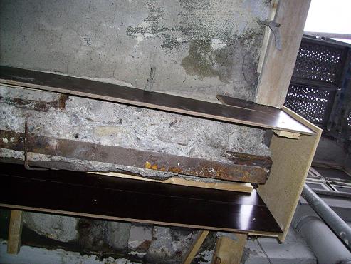 Bei diesem Unterzug wurde unten eine Verstärkung ( Flachstahl ) von 15 cm Breite 12 mm Stärke 4,50 m Länge angebracht .