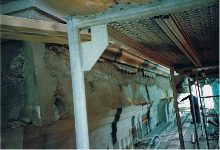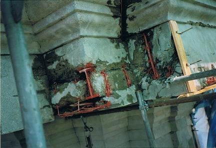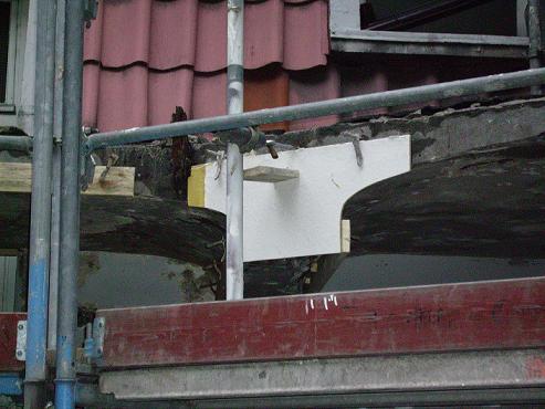 Dort wurden mehrere Stützen im Keller ausgewechselt vermauert, bewehrt und mit Spritzbeton ummantelt, damit ist ein Brandschutz von F-90 gewährleistet .